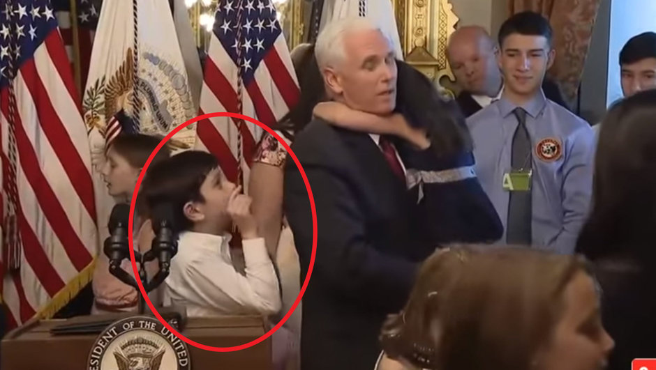 ABD Başkan Yardımcısı Pence, asker ailelerine yaptığı konuşma sırasında yanlışlıkla koluyla bir çocuğun yüzüne çarptı. Küçük çocuk ise Pence'e özür diletmeden peşini bırakmadı.