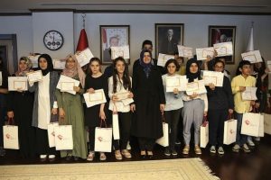 Aile ve Sosyal Politikalar Bakanı Fatma Betül Sayan Kaya, Çocuk Evleri'nde kalan ve karneleri ile kendisini ziyaret eden çocukların sevincini paylaşarak, "Türkiye genelinde geçtiğimiz dönem sonu itibarıyla bakımımızdaki çocuklarımızın yüzde 34'ü takdir ve teşekkür aldı. Bu, gerçekten bizi çok mutlu eden bir oran. 2014 yılına kıyasla çok büyük bir başarı. O zaman yüzde 14'lerde olan bu rakam, bugün yüzde 34'lere ulaşmış durumda." dedi.Kaya, bakanlığa bağlı kuruluşlarda kalan ve 2016-2017 öğretim yılında başarılı olan öğrencilerle makamında bir araya geldi.Sınıflarını takdir belgesi alarak bitiren çocukları tebrik eden Bakan Kaya, "Sizi burada böyle mutlu bir şekilde görmek çok güzel. Hepinizi tebrik ediyorum. Ara ara görüşüyor, konuşuyoruz ama bugün sizi burada takdirlerle görmek bizim için mutlulukların en büyüğü. İnşallah başarınız daim olsun." diye konuştu.Bakan Kaya, kabulde çocuklara tek tek ileride hangi mesleği yapmak istediklerini de sordu. Çocuklar da Kaya'ya, Oxford Üniversitesi'nde DNA mühendisliği, sosyolog, hakim, savcı, aşçı, doktor, çocuk gelişimi, müzisyen, edebiyat öğretmeni, psikolog, polis ve mühendis gibi meslekleri seçmek istediklerini belirtti.Bu yılın Temel Eğitimden Ortaöğretime Geçiş (TEOG) Sistemi kapsamında yapılan ikinci dönem merkezi ortak sınavda, tam puan alan Ziya Yücekaya'nın başarısını örnek gösteren Kaya, çocuklarla gurur duyduklarını ifade etti.Bakan Kaya, "Çok çalıştınız, gerçekten çok büyük bir başarı elde ettiniz. Güzel bir tatili hak ettiniz. İnşallah size güzel bir tatil yaptıracağız ama yazın da durmak yok değil mi? İnşallah kitap okuyacaksınız yazın, hem dinleneceksiniz hem öğrenmeye devam edeceksiniz." dedi.Kabulde yer alan kız çocuklarının spor yapmadıklarını öğrenen Kaya, kızların yazın spora yönlendirilmesi, teşvik edilmesini istedi. Kaya, çocuklara ayrıca kardeşlerine, akranlarına örnek olma çağrısında bulundu."Çocuklarımızın yüzde 34'ü takdir ve teşekkür aldı"Haziran ayı sonu itibarıyla 'koğuş tipi' denilen kurumların da kapanacağını açıklayan Bakan Kaya, "Türkiye genelinde geçtiğimiz dönem sonu itibarıyla kurum bakımımızdaki çocuklarımızın yüzde 34'ü takdir ve teşekkür aldı. Bu gerçekten bizi çok mutlu eden bir oran. 2014 yılına kıyasla çok büyük bir başarı. O zaman yüzde 14'lerde olan bu rakam bugün yüzde 34'lere ulaşmış durumda. Yüzde 34'ün yüzde 22'si de takdir alan, yüzde 12 de teşekkür alan çocuklarımız. Bunu da buradan bir anne gururuyla paylaşmak istiyorum. Çocuklarımız benim de evlatlarım, hepsinin annesi, ablasıyım. Çok büyük bir başarıyı yakaladı çocuklarımız biz onların her zaman yanındayız." değerlendirmesinde bulundu.