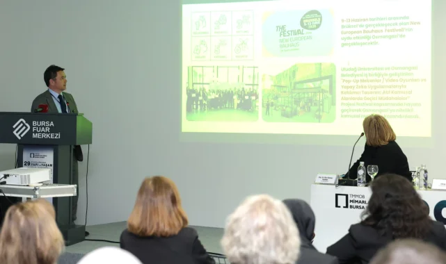 Mimarlar Odası Bursa Şubesi tarafından "Yaşamın, Kentlerin ve Mimarlığın Geleceği" ana temasıyla düzenlenen "Yerel Yönetimler Vizyon Projeler" oturumuna katılan Osmangazi Belediye Başkanı Erkan Aydın, burada gerçekleştirdiği sunum ile Osmangazi'de hayata geçirilmesi planlanan projeleri akademisyenlerle paylaştı.