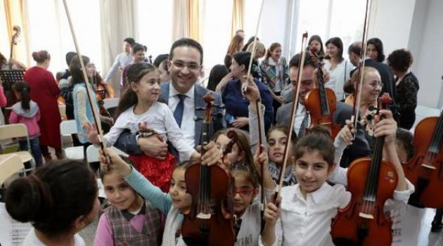 BORNOVA Belediyesi’nin Cevdet İnci Eğitim Vakfı ve Barış İçin Müzik Vakfı işbirliğiyle kısıtlı imkanları olan bölgelerdeki çocukları müzikle sosyal hayata kazandırmayı amaçladığı ‘Barış için Müzik/İzmir- Bir Nota Bir Hayat’ projesi kapsamında eğitim alan 63 çocuk, 23 Nisan’da konser verecek.‘Barış için Müzik/İzmir- Bir Nota Bir Hayat’ projesi kapsamında, Bornova Belediyesi, Cevdet İnci Eğitim Vakfı ve Barış için Müzik Vakfı işbirliğinde, Naldöken Kültür Merkezi’nde 2015 yılından bu yana eğitim alan 63 çocuk, Büyük Önder Atatürk’ün kendilerine armağan ettiği günde, İzmir Büyükşehir Belediyesi Ahmed Adnan Saygun Sanat Merkezi’nde ilk konserine çıkacak. 23 Nisan 2017 Pazar günü saat 16.30'da başlayacak konseri konuk şef Elvis Perez yönetecek. Şef Tolga Akın’ın çalıştırdığı Orkestra, Allegro, Can Can, Fiddle Dee Dee, Hunter's Chorus, Whitches Dance, Ritmos Ciganos, Hymn to Joy, Gypsy Ouverture, Karnaval ve Long Long Ago olmak üzere 10 klasik müzik eserini icra edecek. TOBAV Çocuk korosu da bu özel konsere, 23 Nisan Şarkıları seslendirerek destek olacak.YAZ-KIŞ ÖZVERİYLE ÇALIŞTILARYaşları 6 ile 16 arasında değişen çocuk ve gençten oluşan orkestrada, 38 keman, 16 viyola, 8 viyolonsel ve 3 kontrabas öğrencisi yer alıyor. Çalışmalar, eğitim-öğretim dönemlerinde; okul öncesi ya da sonrasında hafta içi iki gün ve cumartesi günleri olmak üzere toplam üç günde gerçekleşiyor. Yaz döneminde ise dersler haftada beş güne çıkıyor. Program kapsamında solfej, enstrüman ve orkestra dersleri verilerek çalışmalar sürdürülüyor."AMACIMIZ SANATI SEVDİRMEK"Bir Nota Bir Hayat Projesi'nin, barış ve müziği yanyana getiren çok özel bir çalışma olduğunu belirten Bornova Belediye Başkanı Olgun Atila, "Bu proje ile çocuklarımıza sanatı ve müziği sevdirmeyi, özgüvenlerini geliştirmeyi ve sosyal hayatlarına katkı sağlamayı hedefledik. Uzun bir eğitim döneminin ardından çocuklarımız çok özel bir günde ve mekanda ilk konserlerine çıkacak. O günü Ben de heyecanla bekliyorum. Hep birlikte Ahmed Adnan Saygun Sanat Merkezi'nde olalım" dedi.