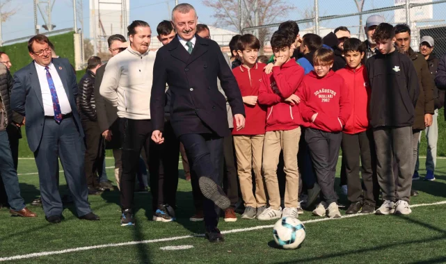 Kocaeli Büyükşehir Belediye Başkanı Tahir Büyükakın, İzmit Ayazma Mahallesi’nde yapımı tamamlanan sentetik futbol sahasını inceledi. Maç yapan çocukların arasına karışan Büyükakın, penaltı atışı da yaptı.