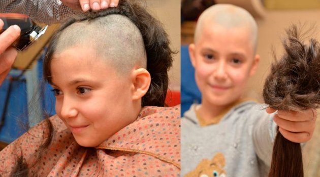 Çorum'da yaşayan 9 yaşındaki ilkokul öğrencisi Hira Demir, "Saçım saçın olsun" kampanyası kapsamında kestirdiği saçlarını, lösemi hastası çocuklar için peruk yapılmak üzere bağışladı