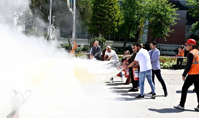Antalya Muratpaşa Belediyesi Afet İşleri Müdürlüğü, belediyenin ana hizmet binasında personelin katılımıyla yangın tatbikatı gerçekleştirdi.