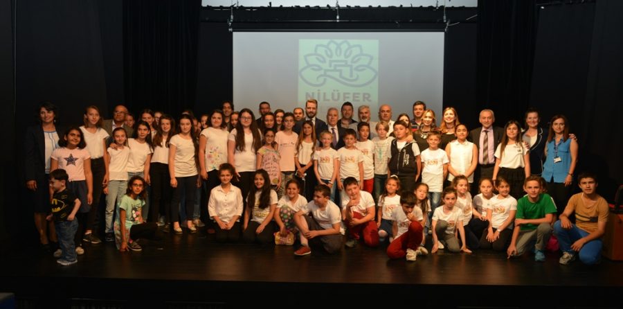 Nilüfer Belediyesi'nin "Nilüfer'in Çocukları Sanatla Büyüyor" projesi kapsamında eğitim alan yaklaşık 100 çocuk, düzenlenen yıl sonu gösterisinde yeteneklerini sergiledi.