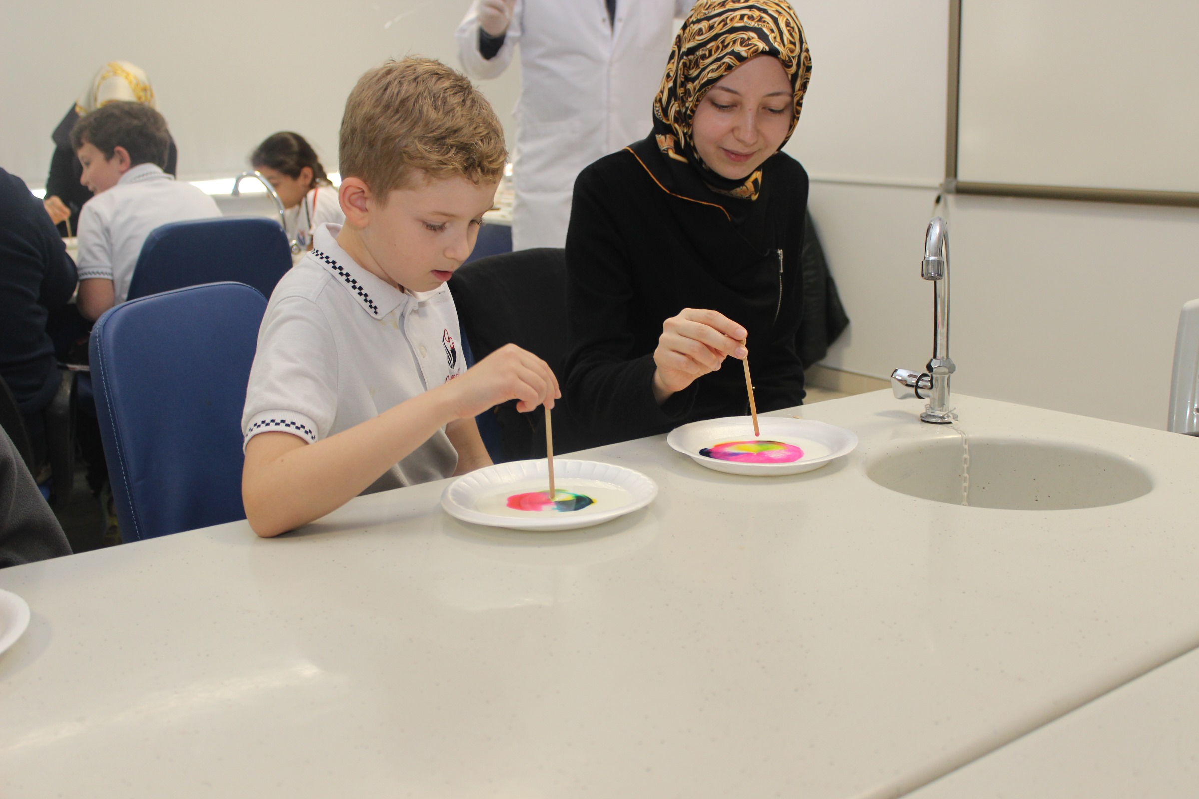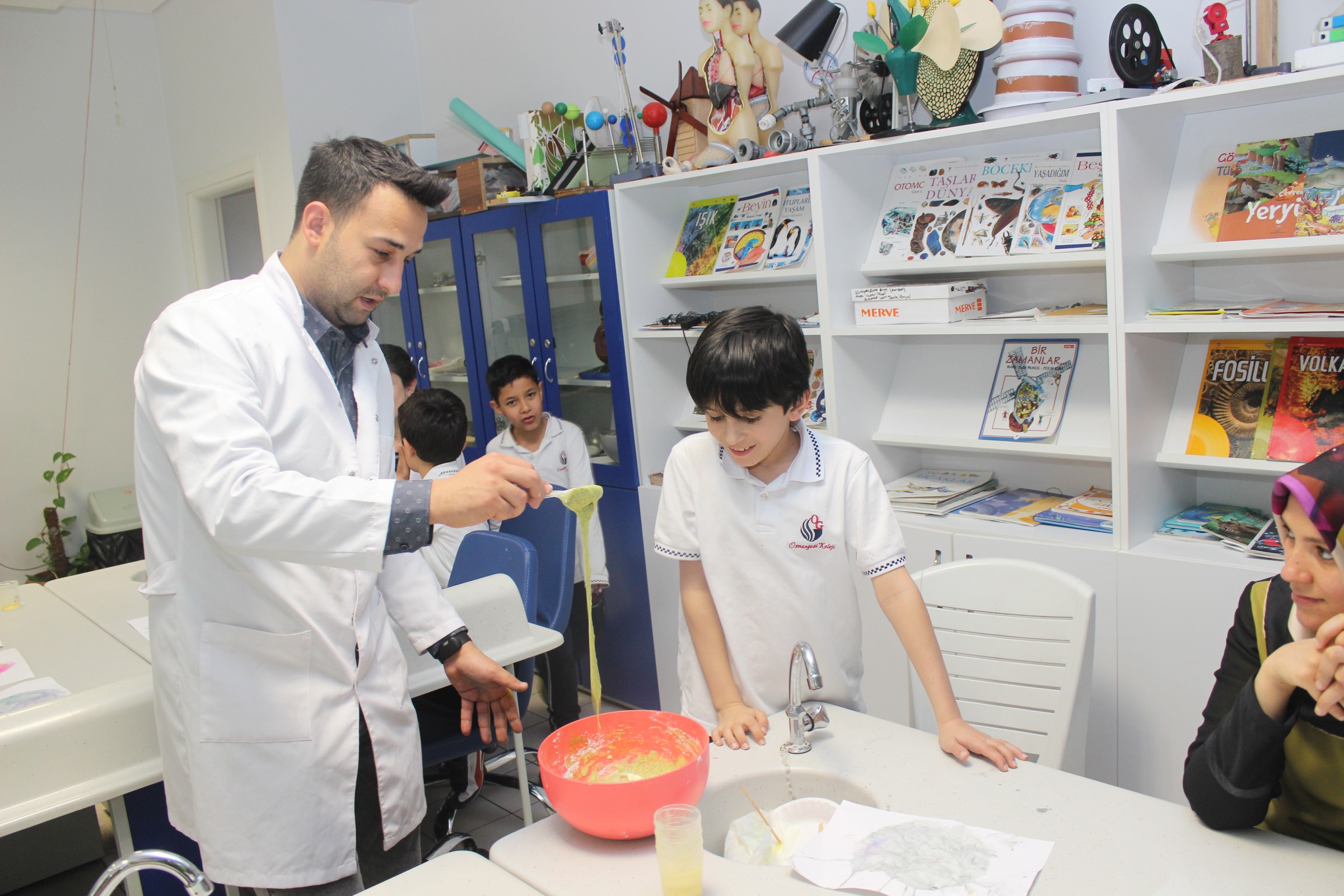 Özel Osmangazi Okulları’nda bilim, eğlenceye dönüştü. Okul laboratuvarında düzenlenen Eğlenceli Bilim aktivitesiyle Osmangazili öğrenciler, gerçekleştirdikleri deneylerle bilimsel gerçekleri eğlenceli bir şekilde öğreniyor. Bu kapsamda gerçekleştirilen etkinlikte, Osmangazili öğrenciler, aileleriyle birlikte bilimsel deneylere imza attı. Minik öğrenciler sihirli süt deneyiyle renklerin dünyasında yolculuğa çıkarken slime deneyiyle sabun nişasta ve organik boyadan kendi oyun hamurlarını kendileri yaptı.