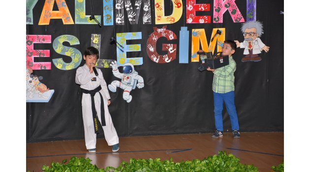 Özel Osmangazi Okulları, öğrencilerinin şimdiden meslekler hakkında bilgi sahibi olması ve ileriki dönemde bilinçli meslek tercihi yapması açısından çeşitli etkinlikler düzenliyor. Bu kapsamda öğrenciler, çeşitli meslek gruplarından kişilerle röportaj yaparak, ileride seçmeyi düşündükleri meslekleri tanıma fırsatı buldular.Veteriner, doktor, öğretmen, bankacı, mühendis, polis, asker, mimar, bilim adamı, kameraman, gazeteci gibi meslek gruplarında faaliyet gösteren kişilerle röportaj yapan Osmangazili minikler, burada edindikleri bilgileri teatral bir gösteriyle sundular. Öğrencilerin ailelerinin ve arkadaşlarının da katıldığı gösteride minikler, hayallerindeki mesleği yapan kişileri canlandırdı.Gösteride, yapmayı düşündükleri mesleklerle ilgili teatral bir performans sergileyen minikler, alkışlarla ödüllendirildi.