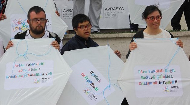 Down sendromlu ve otizmli çocuklar, üzerine dileklerini yazdıkları uçurtmalarla gökyüzünü renklendirdi.