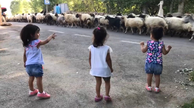 Van'ın Edremit ilçesine bağlı Köprüler Mahallesi'nde, arkadaş ziyaretine giden İstanbullu Yüce ailesinin 2 yaşındaki ikizleri Elif ile Mira, ilk kez gördükleri koyunlar karşısında mutluluk çığlıkları attı.KÖYDEKİ ÇOCUKLAR İÇİN NORMAL OLAN BU DURUM, ŞEHİRLİ İKİZLERİ ŞAŞKINA ÇEVİRDİKoyun sürüsü geçene kadar sevinç gösterisinde bulunan ikizler, hem kendileri eğlendi, hem de izleyenlere keyifli anlar yaşattı. Çocukların koyunları görür görmez koşmaya başladığı anlar kameralara yansıdı. Diğer çocukların günük hayatının bir parçası olan bu olay, onlarda şaşkınlık yarattı. Birbirlerine "me" diyerek koyunları işaret eden sevimli ikizlerin heyecanı izleyenleri gülümsetti.