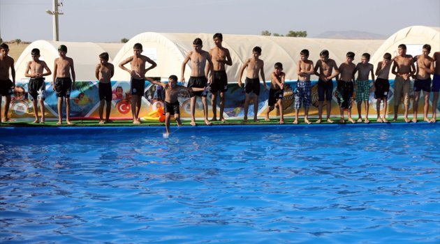 İçişleri Bakanlığınca görevlendirme yapılan Mardin Büyükşehir Belediyesince, Midyat ilçesinde Suriyelerin kaldığı kampta çocuklar için havuz oluşturuldu.Mardin Büyükşehir Belediyesi Sosyal Hizmet Daire Başkanlığı tarafından çocukların yaz aylarını daha iyi geçirmelerini sağlamak için hayata geçirilen "Mahalleme Havuz Geldi Projesi" kapsamında kurulan havuzlarda, çok sayıda çocuğa yüzme eğitimi veriliyor, çeşitli aktiviteler yapılıyor. Proje kapsamında Midyat ilçesinde Suriyelilerin kaldığı kampta da havuz oluşturuldu.Büyükşehir Belediyesi Başkan Vekili Vali Mustafa Yaman, proje kapsamında Suriyeli çocukları da mutlu ettiklerini belirterek çocukların mutluluğunu esas alan projeleri hayata geçirdiklerini aktardı.Yaz aylarında çocukları havuzla tanıştırdıklarını ifade eden Yaman, şöyle konuştu:"Bu yıl da evlatlarımızın ayağına havuzları götürdük. Midyat'ta yer alan ve savaştan dolayı ülkemize sığınan çocuklarımız için de aynı çalışmayı yaptık. Ülkemiz mazlumun yanında olmasının yanı sıra dünyada söz sahibi bir ülkedir. Dünyanın neresinde olursa olsun tüm mazlumların duasını alan ülkemiz, Suriye'de yaşanan savaşta da mazlum halka kucak açmış ve ağırlamaya başlamıştır. Midyat'taki çocukların da mutlu olmasını istedik. Streslerini atmaları ve güzel zaman geçirebilmeleri için havuzlarımızı orada da kurduk. Suriyeli evlatlarımız havuzlarımızda unutulmaz anlar yaşamakta ve ülkemiz için duacı olmaktadır. Dezavantajlı grupların mutlu olması adına çalışmaları sürdüreceğiz."KAYNAK: AA