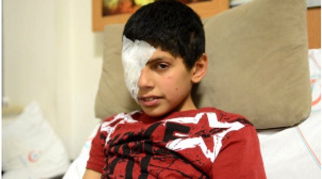 El bab'ta ağır yaralanan ve bir gözünü kaybeden Suriyeli çocuk, yaşama tutunduğu Kilis'te patlamada ölen babasının da sağlığına kavuştuğunu sanıyor.